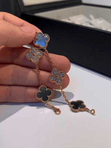 Four-leaf clover bracelets symbolize luck and good fortune. Each leaf represents different meanings such as love. health. wealth. and happiness. Four-leaf clover bracelets are considered a talisman. symbolizing good luck and auspiciousness. They have become a classic style and enjoy widespread attention and popularity. They bring blessings and auspiciousness to the wearer.