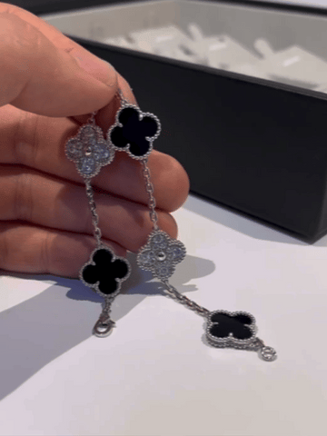 [Vellora-Opalyn]CLOVER 5 MOTIF ONYXS DIAMOND BRACELET SILVER