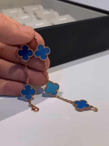 Four-leaf clover bracelets symbolize luck and good fortune. Each leaf represents different meanings such as love. health. wealth. and happiness. Four-leaf clover bracelets are considered a talisman. symbolizing good luck and auspiciousness. They have become a classic style and enjoy widespread attention and popularity. They bring blessings and auspiciousness to the wearer.